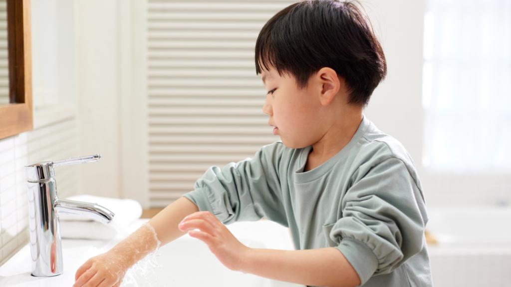 If your child resists washing their hands, stay calm and consistent. Try explaining why it matters in ways they can understand—“Washing your hands keeps your tummy from getting sick” or “It helps protect your friends, too.”